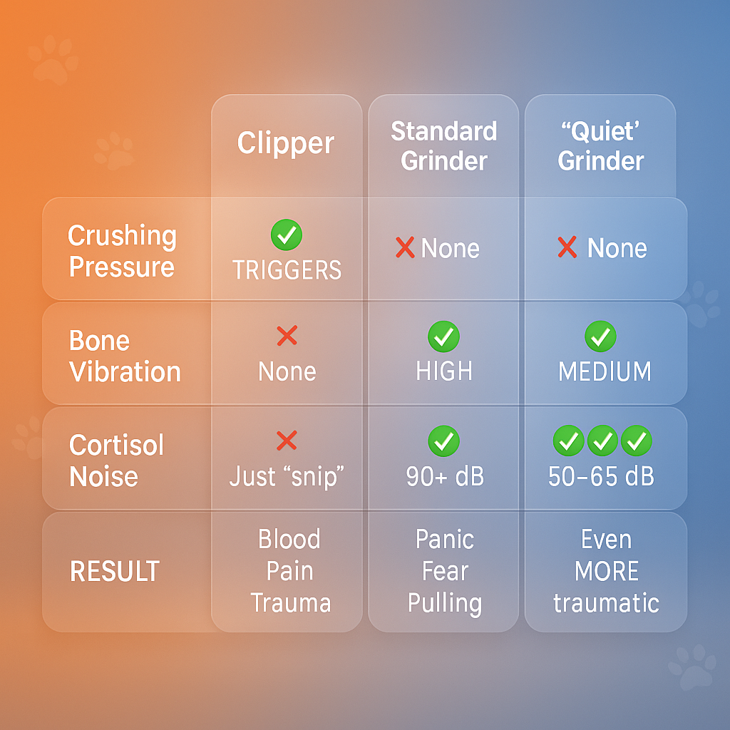 Traditional nail tools trigger three biological panic responses in your pet’s nervous system.